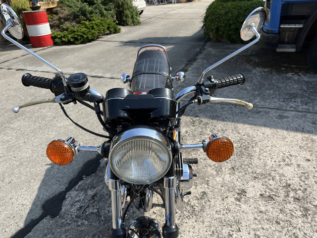350iger mit eingetragenem 400er Motor, TÜV neu, Reifen BT46 neu und vieles mehr. Zylinder und Kurbelwelle vor ca. 5000km revidiert. Nichts für Oiganlitätsfans aber eine gute Fahrmaschine draufsetzen und losfahren. War von 1979 bis 2025 im selben Besitz. 400er Vergaser, Zündung und Motor. Vor dem TÜV einmal komplett durchgeschraubt. Vergaser überholt mit Originalteilen, Schwarzwaldschnecke bearbeitete Zylinderköpfe. Getriebe neu gelagert und Vieles mehr.