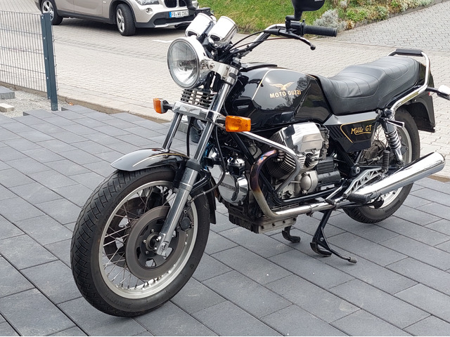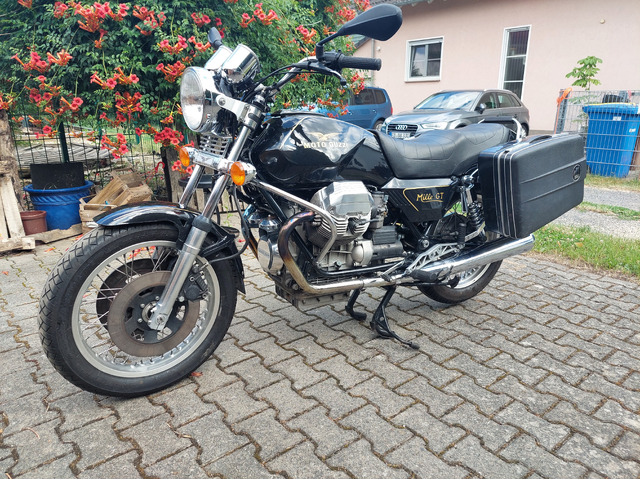 Wunderbare Moto Guzzi Mille GT im Superzustand zu verkaufen. Schöner Klassiker! EZ 4/88, TÜV 7/27, 942 ccm, 67 PS, ca. 82000 km, VB 4600 €, Speichenräder, H+B-Kofferset mit Träger und Gepäckbrücke, Koni-Stoßdämpfer, elektronische Silent-Hektik-Zündung, Bleifreiumbau in 2008. Kein Wartungsstau, läuft perfekt! Satte Straßenlage, wunderbarer Durchzug und unvergleichlicher, serienmäßiger Sound (Lafranconis)! Ansehen, -hören und fahren lohnt sich! Verkauf erfolgt privat und ohne Garantie. Auskünfte gerne unter 0162-9202137.